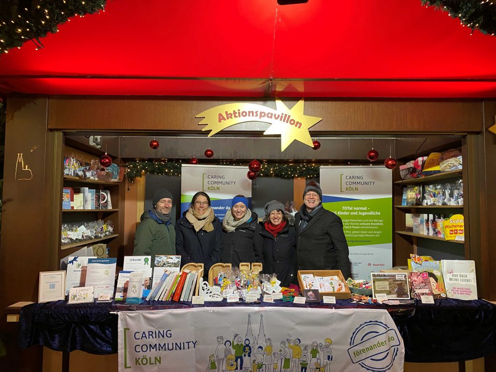 Weihnachtsmarkt am Dom: Buddies helfen im Aktionspavillon der Caring Community Köln mit